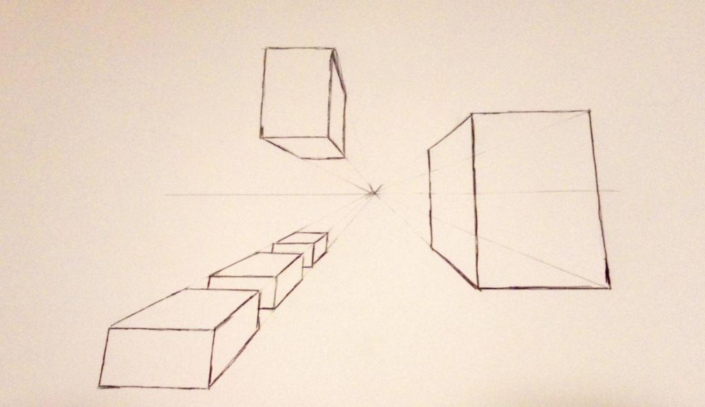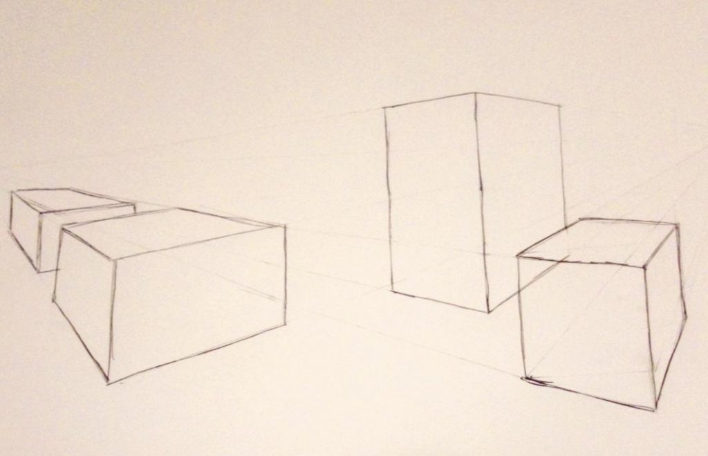 The above images are my attempts at using perspective within an image. I drew them using a ruler and a pencil and then went over in pen afterwards. I felt like using perspective was relatively simple although I did make some minor errors here or there. I decided to attempt all three types of point perspective with simple buildings and then I added some details to the two point perspective image although I didn’t add much. For my one and three point perspective drawings, I feel I did them pretty well as mostly all the lines seem to match up with the vanishing points. However, with my two point perspective drawing I used more space which was an issue with some parts of the drawing as my ruler is not full sized so some of the lines don’t match up that well. I also messed up with the windows as I tried to freehand them rather then using the ruler so the sizes of them aren’t consistent. If I were to do another perspective drawing like this I would try to replicate an image rather then drawing from my own ideas as I think this would produce a better piece of artwork.