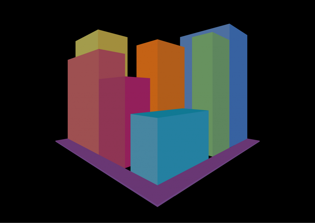 The above image is my attempt at doing perspective in Illustrator. I wanted to go for a simplistic look for the image so I decided to not include much detail on the buildings and instead used the pantone colour palette to show the sides and tops of the buildings. If I were to improve upon it I would add more buildings going into the background to create a true cityscape in this simplistic style. Doing perspective in Illustrator is somewhat easier than doing it in a sketchbook as there is a tool that makes using perspective very simple. It is known as the perspective grid and it can be configured for whatever type of perspective you want. When making this image, I used the two point perspective.