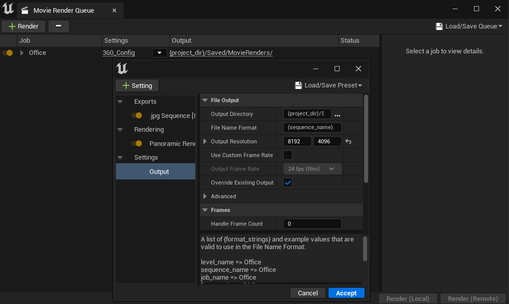 This first test render shows an early version of the environment when the full area was lit up. There was an error with this render as the camera is faced the wrong way. This is due to how the 360 render works in Unreal as the start point will always be the start rotation of the camera when it is imported into the scene. I couldn’t figure out a direct fix so I instead rotated the entire environment so that it would face the right way. Flickering can also be seen on parts of the environment in the back. I couldn’t figure out why this was happening either which is one of the reasons I darkened this area as well as having no purpose for the animation.