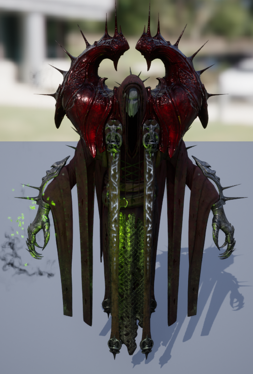 The void spirit was intended to be spooky and mysterious so I decided on using the Paragon: Sevarog character asset pack which perfectly met these attributes. I did have to adjust the model slightly in Unreal as the character had a hammer which I didn’t want to use. To get rid of it, I used a material with 0% opacity as it was an easier solution than editing the model. This asset pack came ready with animations that would be suitable for my idea also so I didn’t need to find or create any animations for this character.