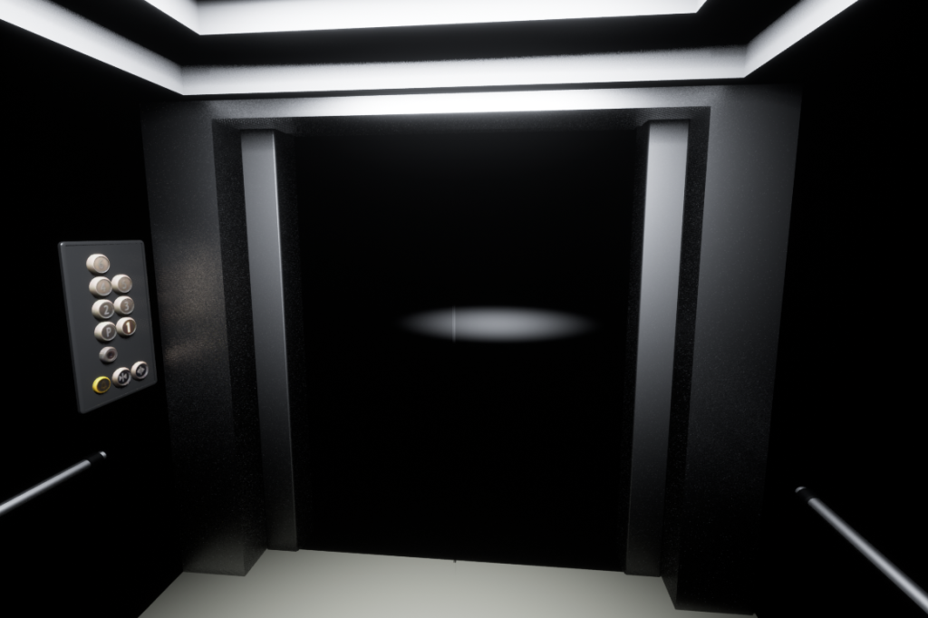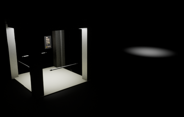 The basis of the elevator was a simple elevator asset from SketchFab but I recreated parts of the model using Unreal Engine’s unbuilt modelling tools as certain parts of the model had to be changed for what I wanted. This was because I wanted to change the material of the walls of the elevator to make them transparent but with how the original model was set up this changed too much of the elevator.