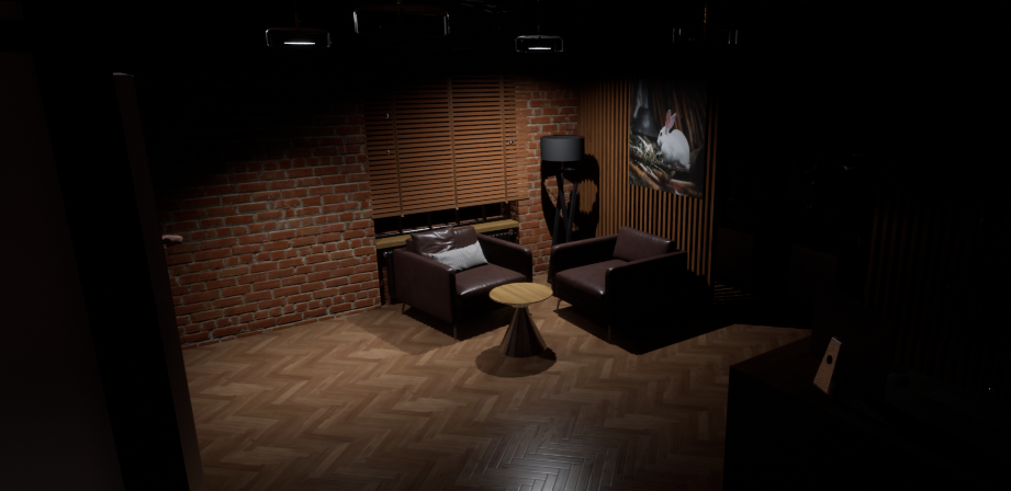 The office utilised the “Loft Office (Modular)” asset pack. This perfectly captured the type of office I was looking for as it’s a nice looking environment that wasn’t overly complicated. I edited parts of the environment to better suit my project which wasn’t too hard due to the modular nature of the pack. I wanted to have a poster behind the player and the wall that was originally there didn’t work too well for that so I replaced it with another wall from the pack. I adjusted the lighting of the environment as I wanted the narrative to be that the player was leaving work late but the map was in the daytime. To match the later time setting, I closed the windows and replaced the open blinds as well as removing a clock with the wrong time. The original map had a meeting room which I removed as I instead placed the elevator where the doorway was. The poster which I added is a reference to the Alice in Wonderland brief as it is a picture of a white rabbit.